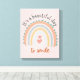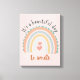 Ajoutez une touche de chaleur et de positivité à votre espace avec cette charmante œuvre d'art murale inspirée du style bohème. Le design présente un arc-en-ciel doux et aux couleurs pastel avec une série d'arcs aux tons apaisants de pêche, de menthe et de crème, chacun orné de motifs charmants tels que des coquilles et de petits cœurs. Au centre de l'arc-en-ciel, un cœur unique fait écho au message qui le surmonte : "C'est une belle journée pour sourire".