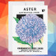 Illustration vintage d'une étiquette de pochette de graines, publicité présentant des plants et des fleurs d'Aster lavande géant ramifié. Faites pousser de belles fleurs violettes dans votre jardin printanier ou dans une ferme. Publicité antique pour la société Roudabush's Seed Store. La plus ancienne maison de graines de Wilmington en Caroline du Nord. Coin des rues Front et Dock.