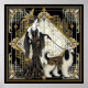 Art Déco Années 1920 Elégante Flapper Lady & Chien en noir, crème et or Poster