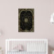 Map the wonders of the deep universe with the "Aura Celestial" Star Chart poster. This expansive artwork features a central, multi-pointed starburst engine that serves as the anchor for a vast web of connected constellations and stellar coordinates. The entire celestial scene is viewed through a grand, arched Art Deco window, detailed with elegant fan motifs, fluted columns, and geometric borders in signature teal and metallic gold.