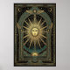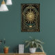 Art Deco Celestial Sun Face Poster | Gold Teal