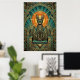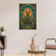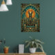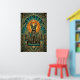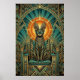 Ce chat noir royal art déco trône avec un collier géométrique et des triples arches dorées encadrant un halo de soleil orange dramatique. Les détails du marbre sarcelle et la composition opulente des années 1920 créent un luxe inégalé pour les salons, les entrées et les espaces sophistiqués où les amateurs de chats exigent l'art mural le plus raffiné.