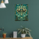 Elevate your space with this stunning fusion of Mid-Century sophistication and rugged Western charm. This premium poster features a stylized cowboy hat centered against a magnificent geometric sunburst and fan motifs, inspired by the classic Art Deco era. The palette of deep teal, emerald green, and shimmering metallic gold outlines brings a luxurious, modern feel to traditional desert elements like saguaro cacti and mountain silhouettes.