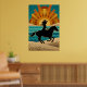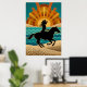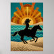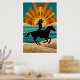 Art Deco Cowgirl Horse Sunset Teal Orange Poster