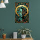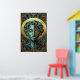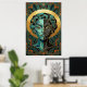 A stunning masterpiece of avant-garde design, this Art Deco portrait features a stylized woman's face rendered in a bold, geometric cubist style. With a color palette of deep teal, midnight black, and shimmering gold, the face is perfectly centered against a radiant sunburst circle. Intricate chevron and geometric patterns frame the composition, making this an ideal statement piece for a modern gallery wall, upscale office, or sophisticated living room.