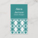 Design Art Déco Blooms élégant et sophistiqué design Carte de visite dans aqua avec un arrière - plan motif à motifs floraux déco. Ce design élégant serait parfait pour les entreprises créatives ou glamour comme le design d'intérieur. Facile à customiser, ajoutez simplement les détails de votre entreprise dans les champs fournis. Cliquez sur "Customiser" pour trouver d'autres options de personnalisation.