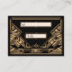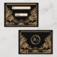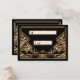 Une carte mariage ou une carte d'escorte audacieuse et élégante, de style vintage, avec un thème "Great Gatsby" des années 2000 dans les tons noir et or. Un arrière - plan noir met en valeur la bordure géométrique complexe de style Art Déco dans les tons beiges dorés. Des cadres décoratifs et des polices de style d'époque ont été sélectionnés. Les monogrammes de la Mariée et de la Chambre peuvent être ajoutés dans une couleur gris argenté contrastée au verso de la carte.
