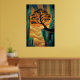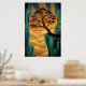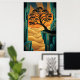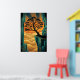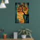 Art Deco Ginkgo Tree Ocean Cliff Gold Teal Poster