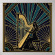 Art Deco Harpist Silhouette Poster Gold and Black