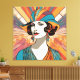 Un élégant imprimé en toile, avec des oeuvres d'art de style Art déco. Avec un somptueux mélange de blues, d'oranges et de jaunes, cette image générée par l'IA crée un look rétro sophistiqué sur n'importe quel mur.