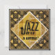 Invitation du réveillon du Nouvel An. Style Art déco avec saxophone et message pour le jazz. Remplissez les informations pour votre réunion de fête au dos.