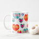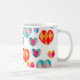 Cette tasse a un design Art Déco de coeurs en diamants, dans les tons rose, bleu, vert, or et rouge.