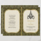 Chandelier seigaiha Art Déco plié cérémonie mariage et programme de fête. Cet élégant modèle classique de programme de mariage dispose d'un motif japonais seigaiha vague en or et noir, d'un lustre sur beige/ecru et d'une bordure Art Déco. Une approche contemporaine du style The Great Gatsby. Pliez-le au centre. Ce type de papier-valeur se plie bien donc, choisissez seulement cela.
