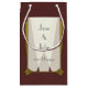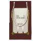 Offrez des cadeaux pour vos accompagnateurs, groomsmen, famille et toute autre personne qui mérite un petit quelque chose de spécial dans ces sacs cadeaux, parfait pour tout mariage ou événement avec une touche de style classique des années 20. L'avant de ce sac en brique rouge est décoré d'un cadre d'or d'inspiration Art Déco et de projecteurs stylisés mettant en avant un simple "Merci". Le dos a un cadre et des projecteurs assortis avec un exemple de texte que vous pouvez customiser pour correspondre aux détails de votre journée spéciale. N'oubliez pas de jeter un oeil aux autres produits de l'ensemble Art déco Swanky en rouge pour créer un look vraiment coordonné pour votre événement.