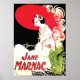 Illustration Art déco de Charles Gesmar de la chanteuse d'opéra, Jane Marnac, c. 1920, est un véritable hommage à la beauté et à la grâce de Mlle Marnac. Le grand casquette rouge aux panaches rouges, blancs et verts est époustouflant, tout comme sa robe taillée en fourrure blanche. Un grand cadeau pour le collectionneur et amoureux de l'art déco vintage et de la mode ! Nettoyé avec éclat de couleur tout en conservant son charme vintage.