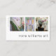 Ce carte de visite moderne et élégant personnalisé pour artistes ou designers dispose de 3 modèles pour ajouter vos photos préférées ainsi que votre logo. Tous les détails comme les événements, nom et médias sociaux ou les coordonnées peuvent être customisés individuellement. Si vous n'avez pas besoin d'informations, supprimez simplement la ligne.