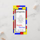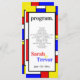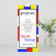 Programme d'événements - Un design rétro amusant et funky qui est aussi amusant que vous - un look nostalgique des années 60 avec une police audacieuse cool jumelée aux couleurs primaires de jaune, bleu et rouge soulignée en noir dans les formes géométriques dans le style de Mondrian. Facile à customiser avec vos détails spécifiques. © WhimsicalArtwork créée pour BarefootBride™