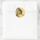 Beau détail de bois japonais imprimé bloc de chat dans l'arbre. Autocollant rond classique personnalisé
