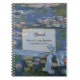 Joli carnet en spirale avec Claude Monet peinture Water Lys comme l'arrière - plan. Des graphiques d'un champ de texte à bordure dorée et de jolis graphiques d'un ruban bleu satiné finissent le livre d'or coloré. Le texte noir est prêt à être personnalisé pour votre mariage. Produits mariages correspondants disponibles, voir liens ci-dessous.