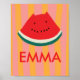 Illuminez la chambre de votre enfant avec cette joyeuse impression de pastèque ! Avec une tranche de pastèque rouge vif sur un fond rayé joyeux, ce design apporte une touche de couleur et de joie à toute nurserie, salle de jeux ou chambre d'enfant.