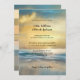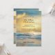Faire-part de mariage avec une peinture originale d'art d'un coucher de soleil sur la plage. Le dos présente un design rayé aux couleurs rêvées.