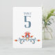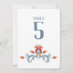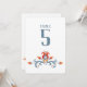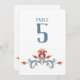 Ce numéro de table d'inspiration scandinave présente un design d'art folklorique floral réalisé dans le style traditionnel de peinture à tole scandinave. Le design à l'avant et à l'arrière a un design tourbillon bleu avec des fleurs orange, grises et rouges sur un arrière - plan blanc. Les numéros peuvent être modifiés pour tenir compte du nombre de tables pour votre événement. Ce numéro de tableau est en coordination avec la collection de Mariages d'art populaire scandinave.
