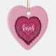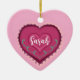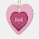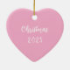 Illustration originale d'un ornement de coeur moderne rose d'art populaire avec nom personnalisé et Noël 2024 sur le côté arrière.