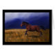 Une illustration spectaculaire capturant le cheval dans le mouvement comme premier bruit soudain de tonnerre est venue la terre, couleurs saisissantes des nuages de tempête au-dessus d'un paysage agricole australien avec le cheval dans le plein mouvement, un grand morceau d'art pour n'importe quelle maison. Peint à la main par l'artiste de gain Michelle Wrighton de récompense multiple.