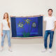 Peinture texturée aux fleurs blanches et jaunes, arrière - plan bleu, art original.