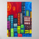 Une grande ville avec de nombreux bâtiments colorés. C'est un art généré par l'IA.