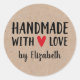 Un autocollant rustique personnalisé "fait main avec amour" sur un arrière - plan de couleur kraft. Faites-le le vôtre en ajoutant votre propre nom. Une jolie touche de finition pour tous vos cadeaux faits main. Conçu pour vous par Blackberry Boulevard.