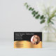 Cartes de visite classiques pour un maquilleur ou un professionnel de la beauté créés avec un élément de design de teinte or simulé et un emblème de maquillage que vous pouvez utiliser sur nos cartes. Conçu pour faire une grande première impression dans un look haut de gamme.