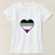 T-shirt Dames 3/4 Sleeve Raglan avec design de coeur dans les couleurs de l'asexualité; noir, gris, blanc et violet, rayures drapeau de la fierté, arc-en-ciel design d'amour