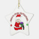 Vous pouvez facilement changer l'année sur ce personnalisable Asiatique Père Noël Baby 1er Noël ornement keesake avant de commander. Un bébé est vêtu d'un costume père Noël rouge, et il est rempli de casquette et de texte qui dit "Le premier Noël du bébé !".