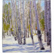 Pittoresque Flagstaff, Arizona aspen arbres lors d'une belle journée d'hiver enneigée, un grand jour pour skieurs, marcheurs et randonneurs. Illustration tirée d'une peinture à l'huile impressionniste originale du peintre d'art Daniel Fishback.