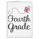 Un beau logo rose de papillon a slogan d'école primaire de style de manuscrit le quatrième pour le professeur. Idée gentille de cadeau de reconnaissance.
