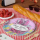 Assiette de fête en papier à motif fleur de rose rouge. Conçue à partir de mes aquarelles originales.