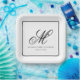 Assiette en papier à monogramme noir et blanc élég