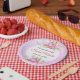 Assiette en papier à motif botanique rose pour ann