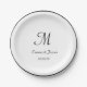Assiette en papier élégante pour mariage avec monogramme noir et blanc