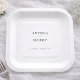 Il n'y a aucune règle qui dit que la commodité ne peut pas être chic. Cette assiette en papier pour mariage noir et blanc en caractères serif modernes prouve que même les détails jetables de votre célébration peuvent, et doivent, refléter vos normes impeccablement élevées.