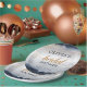 Assiette en papier Navy and Gold pour la fête de mariage. Cette invitation de mariage élégante et stylée présente une superbe aquarelle ombrée peinte à la main. Trouvez des articles assortis dans la collection Navy and Gold.