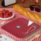 Assiettes créatives pour la fête de remise de diplôme d'infirmière avec des blouses médicales rouges, un stéthoscope et une illustration drôle de couteau suisse. Pour personnaliser, modifiez le texte pour ajouter le nom de la diplômée.