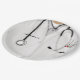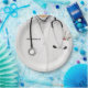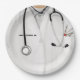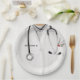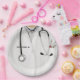 Design unique sur le thème médical avec blouse de laboratoire de médecin, stéthoscope et couteau suisse. Modifiez le texte pour ajouter le nom du docteur.
