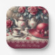 Assiette en papier pour thé à la rose rouge élégan