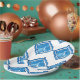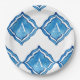 Assiette en papier à monogramme en carreaux bleus cobalt ronde.