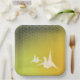 お祝いにふさわしい、折り鶴と紗綾形紋様のペーパープレート。