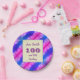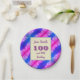 Célébrez un 100e anniversaire ou un autre jalon avec ces plaques de papier personnalisées et vibrantes qui feront le nettoyage un coup après votre célébration. L'arrière - plan présente des rayures abstraites bleu vif et rose néon, se déplaçant en diagonale à travers cette plaque vibrante. Un carré au centre fournit un arrière - plan solide pour "et encore souriant" avec votre âge et votre nom. Tous les textes peuvent être facilement personnalisés pour refléter n'importe quel âge et sentiment.