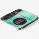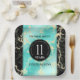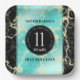 Fêtez leur 11e anniversaire de mariage turquoise avec ces assiettes en papier design! Des lettres noires et blanches élégantes sur marbre jaune, bleu verdâtre et arrière - plans noirs ajoutent une touche mémorable à cette occasion spéciale et à cette étape importante. Personnalisez avec le nom du couple et la date du mariage. Design © W.H. Sim, Tous droits réservés. Voir plus sur zazzle.com/expressionsoccasions