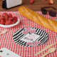 Assiettes En Carton 18e anniversaire fleurs roses noir blanc rayures